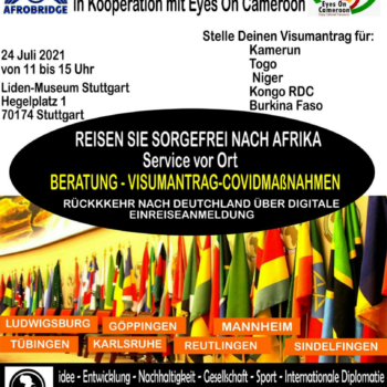Une occasion unique pour obtenir son visa pour le Cameroun pour celles et ceux qui sont dans la grande région de Stuttgart. Afrobridge nous évite le déplacement pour Berlin, Pour Bern ou pour la Belgique. Save_The_Date 24.07.2021…